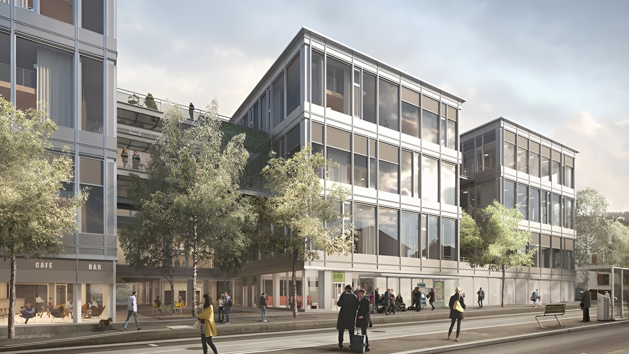 Den Mietern stehen zudem ein Umfeld wie auch Services zur Verfügung, die Kommunikation und Kooperation fördern. Grosszügige Begegnungszonen laden zum Austausch ein. Areal und Mieter sollen sich zu einer Community entwickeln.